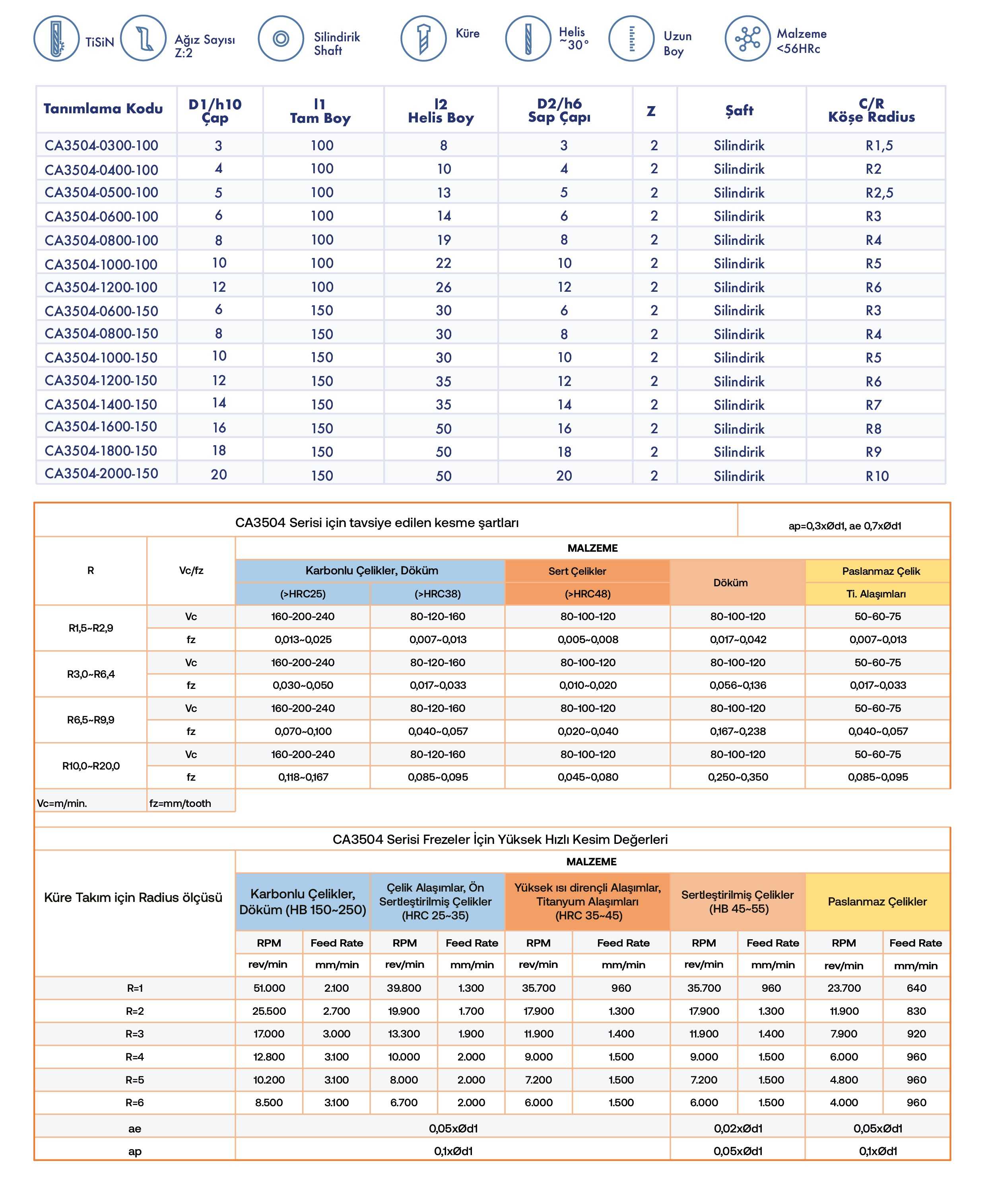 x Sertleştirilmiş çelikler ( 45 - 55 HRC )