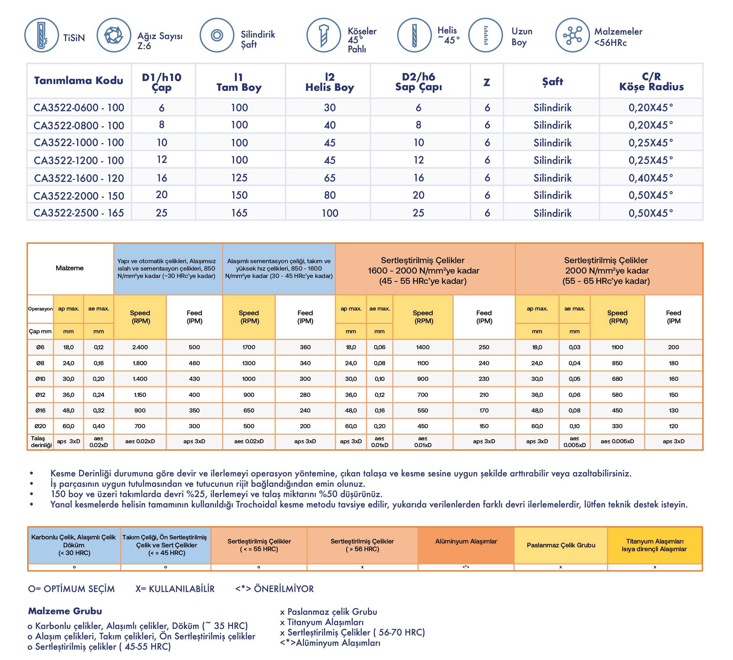 x Sertleştirilmiş Çelikler ( 56-70 HRC)