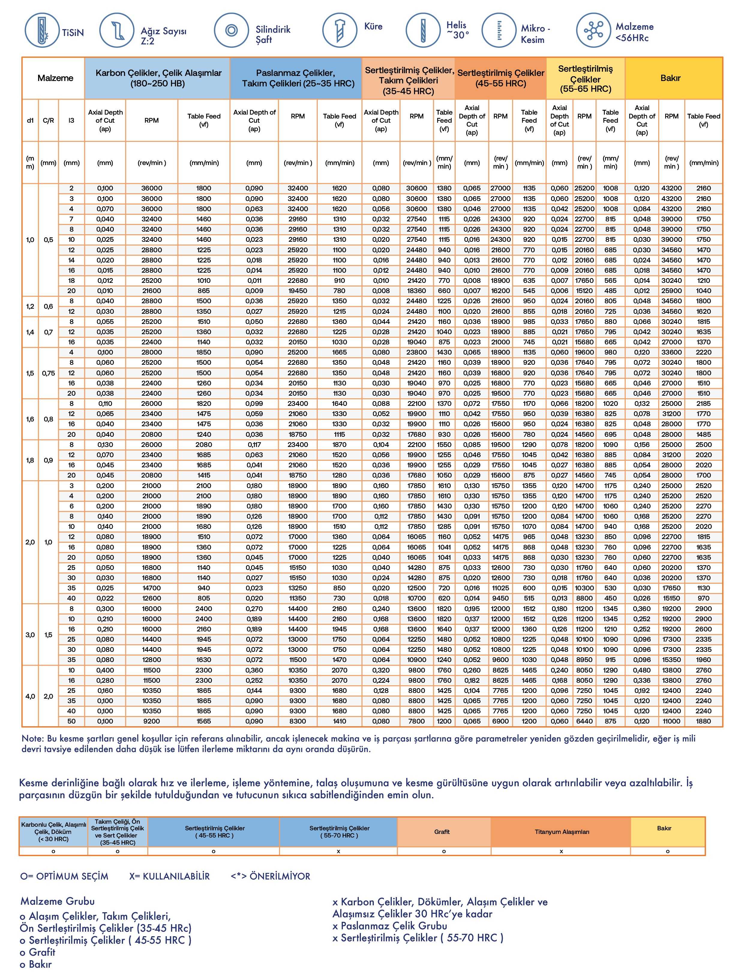 x Karbon Çelikler, Dökümler, Alaşım Çelikler ve Alaşımsız Çelikler 30 HRc’ye kadar