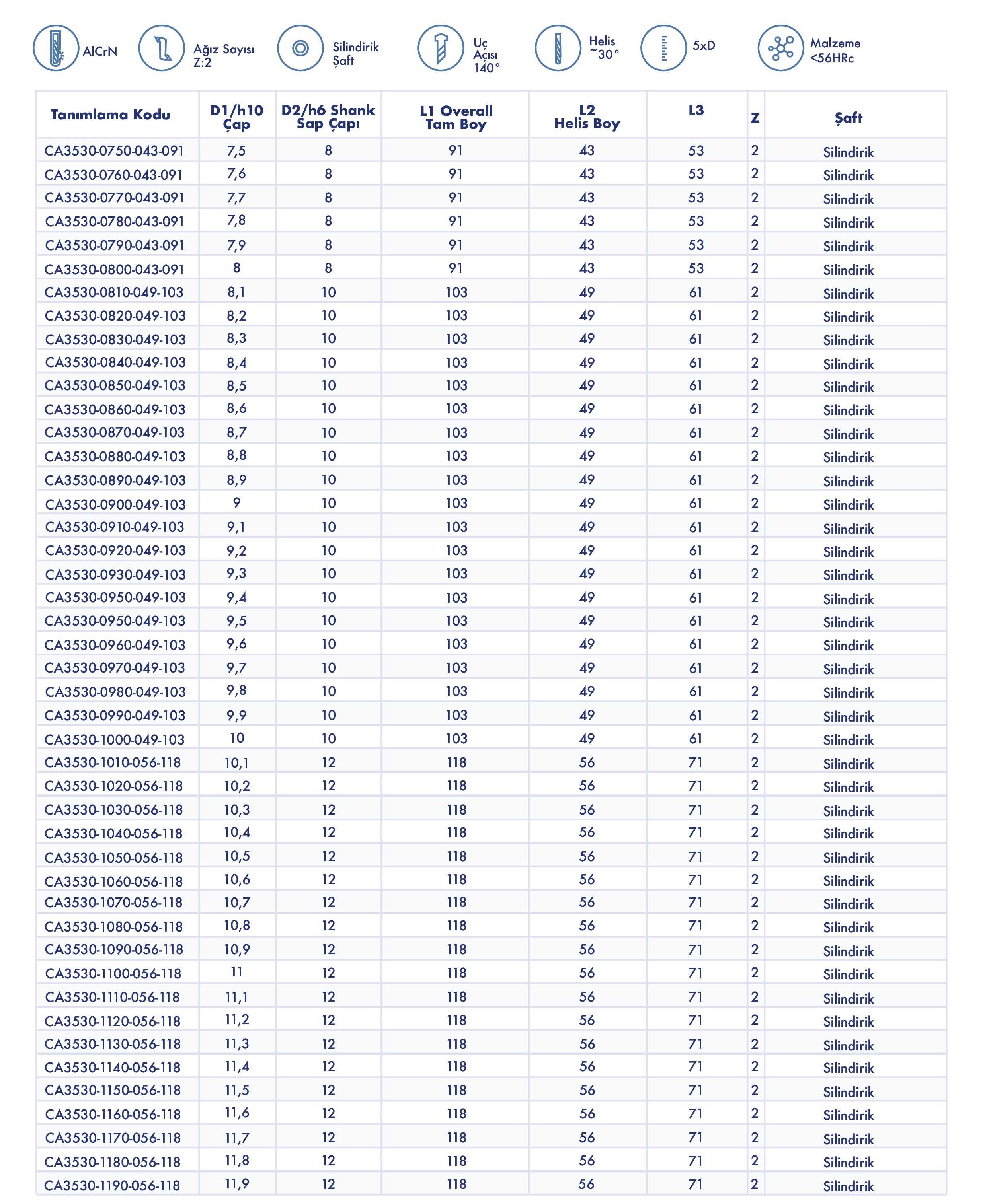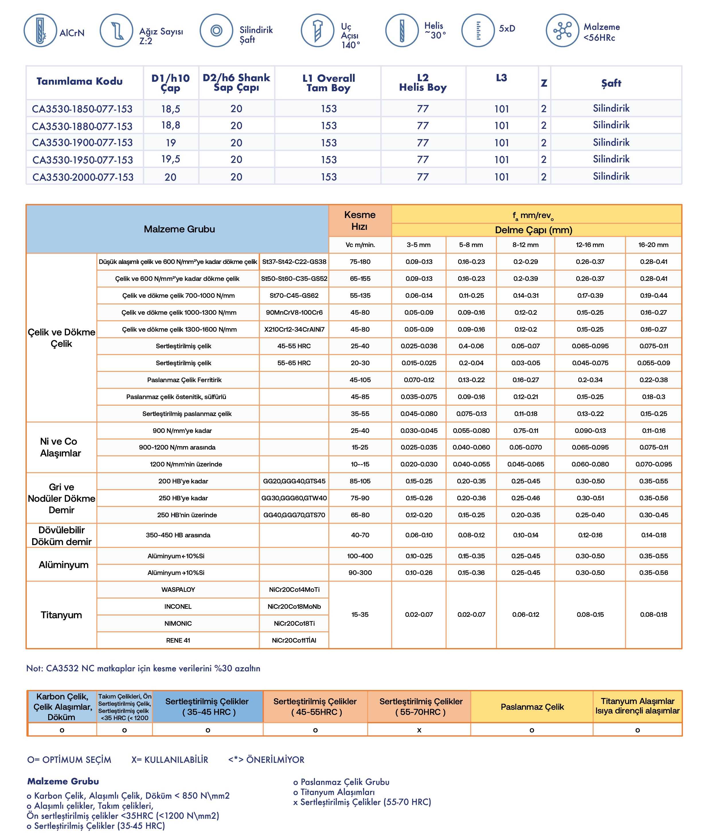 x Sertleştirilmiş Çelikler (55-70 HRC)