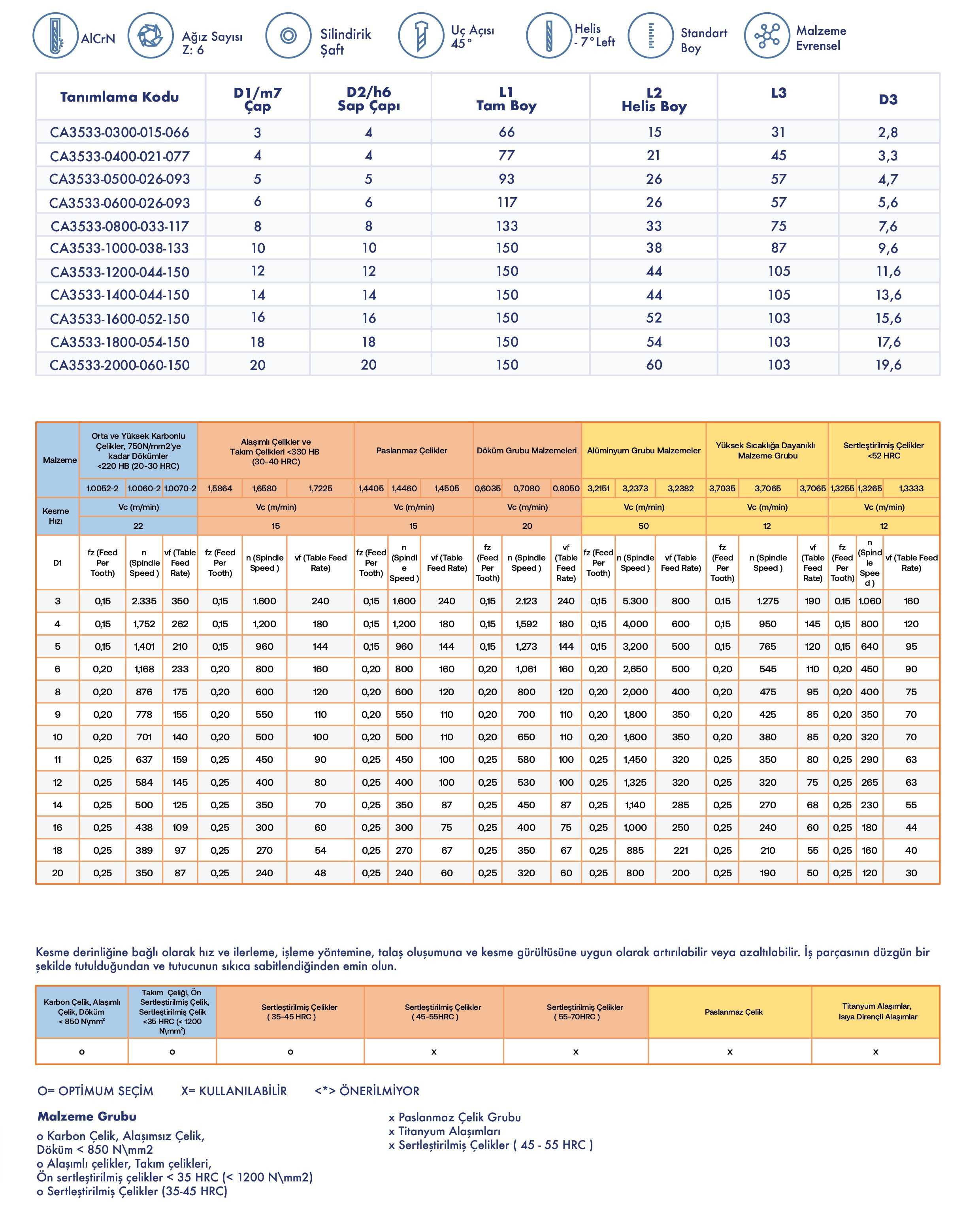 * Kanal Açma S tipi malzemeler için-ap = 0,25D