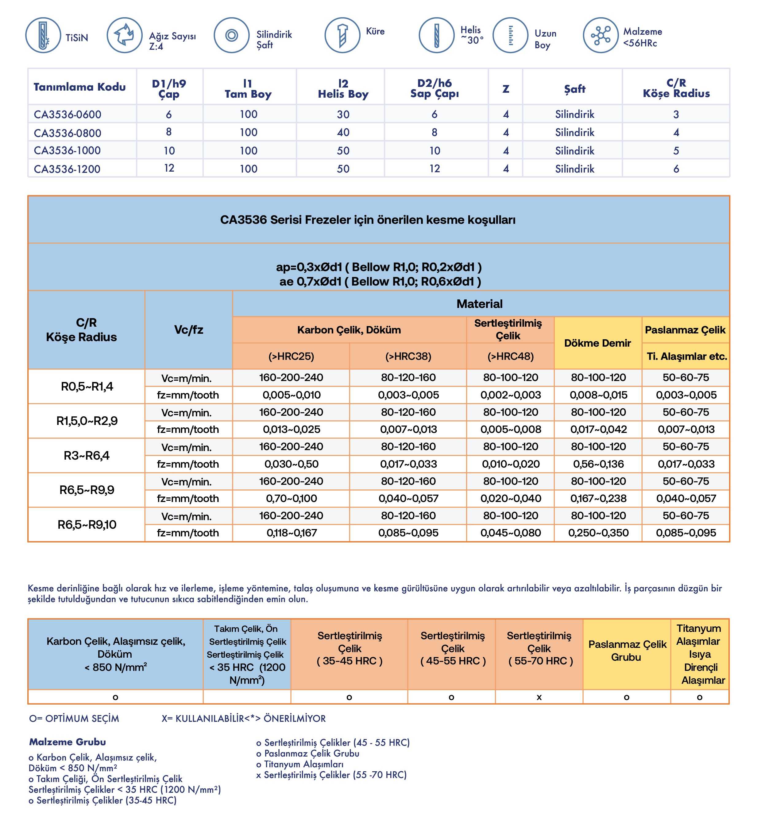 x Sertleştirilmiş Çelikler (55 -70 HRC)